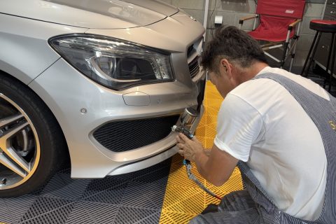 当店では特別なスプレーガンを常備しておりますから細かい場所も抜かりなく施工致します。新車ならずっとそのまま。経年車なら新車のように。