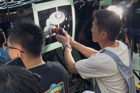 課題は、テストパネルではなく実際の車両(丹下社長のアルファード!)を用いて、【10分間で1インチの800番のペーパー目が3つを消す】というもの。